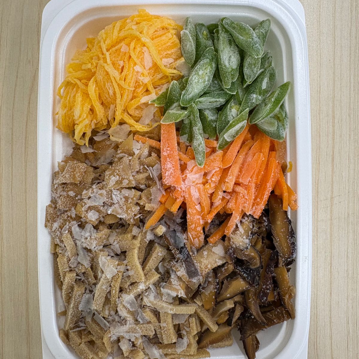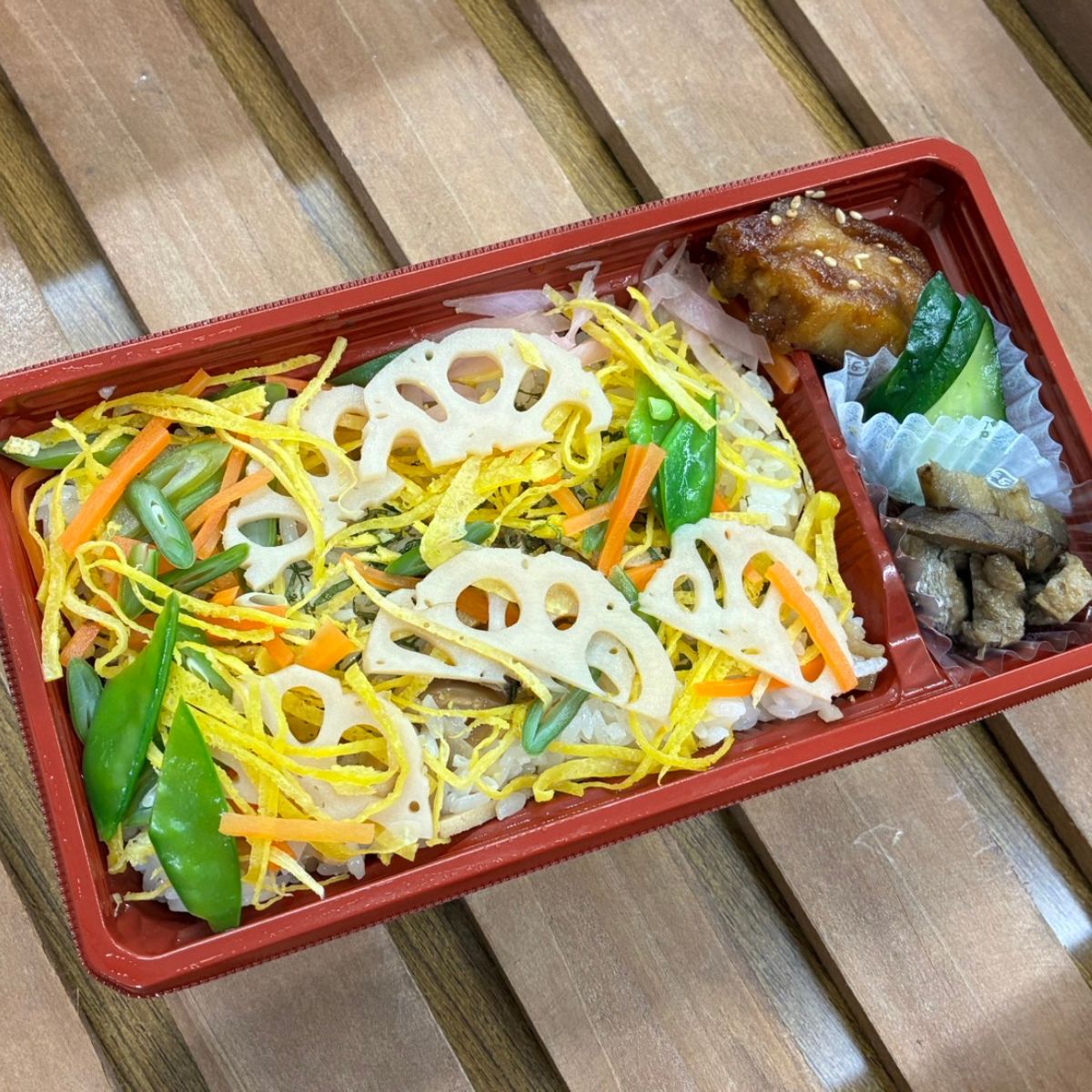にんじん(国産)、いんげん(国産)、干し椎茸(国産)、高野豆腐、かんぴょう、ヴィーガン錦糸卵(豆乳、かぼちゃ、なたね油、粗糖、食塩、こんにゃく)、醤油、本みりん、米酢、粗糖、食塩